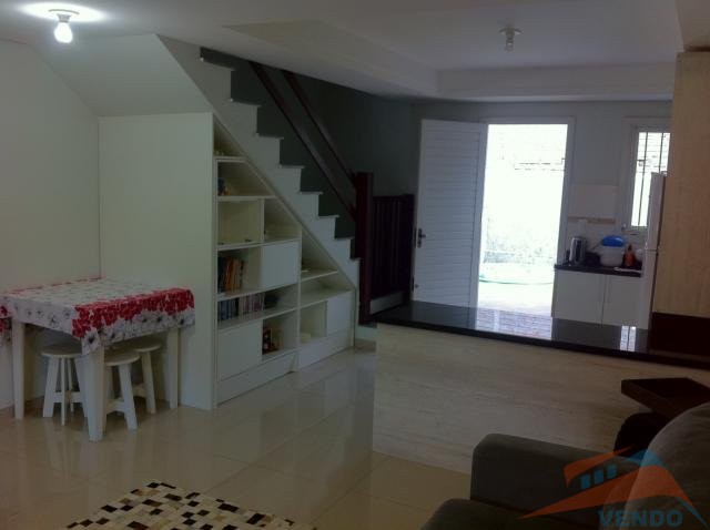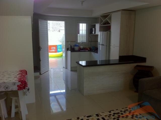 02 dormitórios, banheiro social, lavabo, sala de estar/jantar e cozinha integradas, área de serviço, churrasqueira,com pergolados nos fundos com vidro e na frente para carro.Espera para aquecimento a gás, portão eletrônico, piso porcelanato e forro com detalhes em gesso.